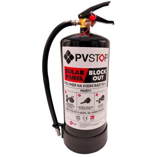 PVSTOP je přenostný přístroj určený pro boj s požáry fotovoltaických panelů. Nehořlavá a ekologicky nezávadná tekutina rychle "vypne" solární panely a urychluje tak zásah pomocí běžných prostředků. Může být aplikována přímo na hořící panely.