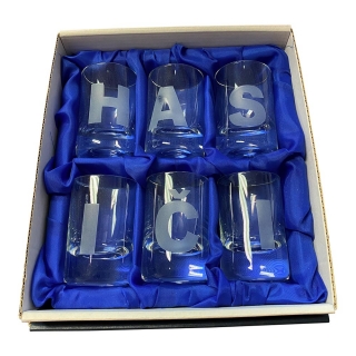 Dárková sada panáků. S broušeným nápisem HASIČI.