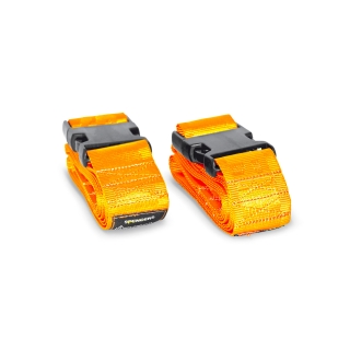 Dvojitý fixační popruh s plastovou sponou pro efektivní fixaci pacienta.